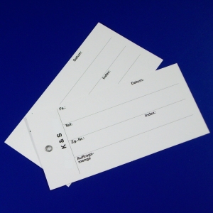 ► Hängeetiketten als Kartonetiketten bzw. Kartonanhänger oder Kunststoff-Etiketten, Kunststoff- bzw. PVC-Anhänger