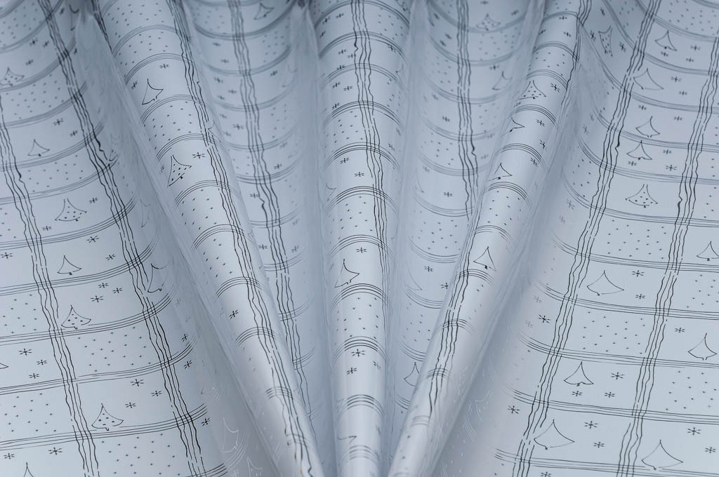 Material: Metallisiertes Papier 74 g/qm; Vorderseite leicht glänzend, Rückseite matt