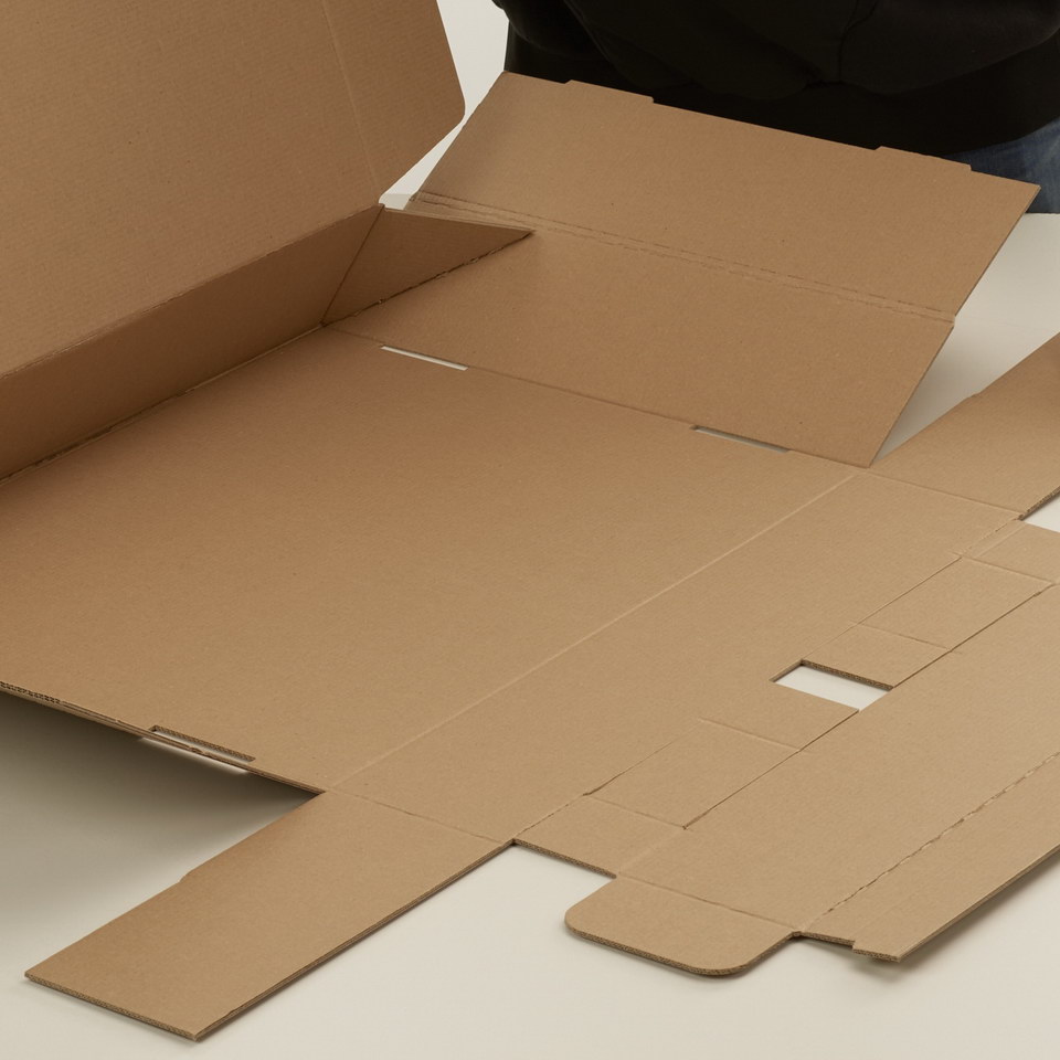 Die Versandbox ist auf die Größe eines Notebooks perfekt abgestimmt. Ein Selbstklebeverschluss und Aufreißfaden erleichtern ein schnelles und sicheres Handling. Ein praktisches, integriertes Innenfach trennt das Zubehör.