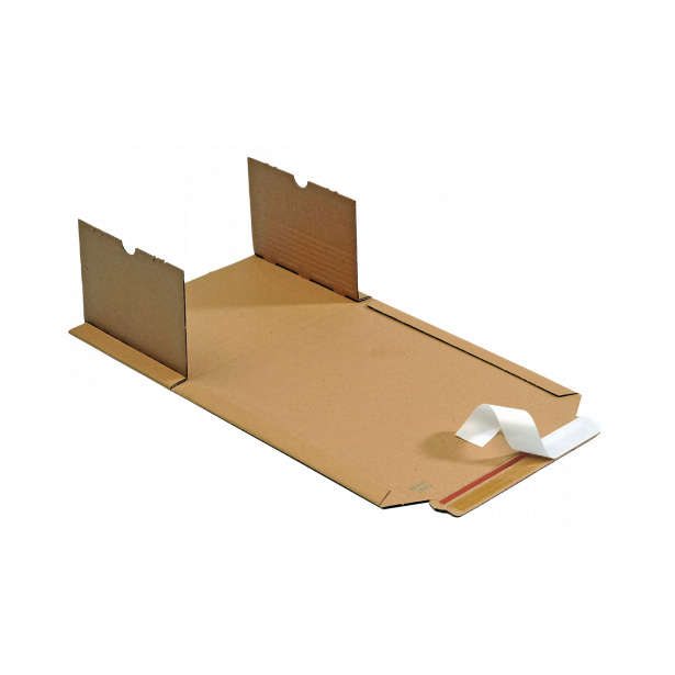 Versandverpackungen mit variabler Füllhöhe von ca. 20-70 mm, Selbstklebeverschluss und Aufreißhilfe, umlaufender Kantenschutz, stabile Testlinerqualität, Handlingsvorteil durch patentierte Stabilisatoren