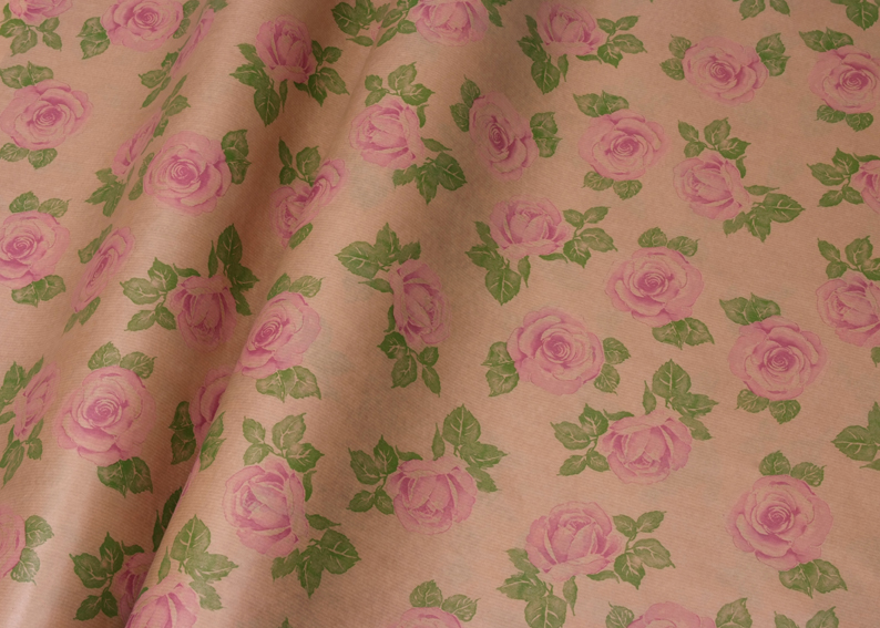Design: Vorderseite: bedruckt mit Rosenmotiv, Rückseite: unbedruckt, braun