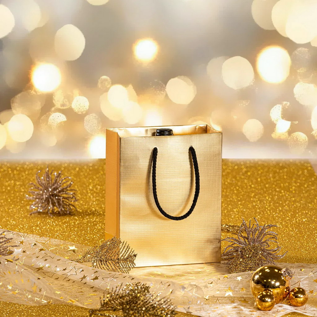 | Flaschentasche für 1 Bocksbeutel gold/schwarz mit Prägung in Leinenstruktur und Kordel | 23,00 EUR 1,15 EUR pro Taschen | 21,00 EUR 1,05 EUR pro Taschen | 20,00 EUR 1,00 EUR pro Taschen | 18,05 EUR 0,90 EUR pro Taschen |