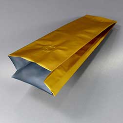 Seitenfaltenbeutel mit Aromaschutzventil 130+75x380 mm, gold