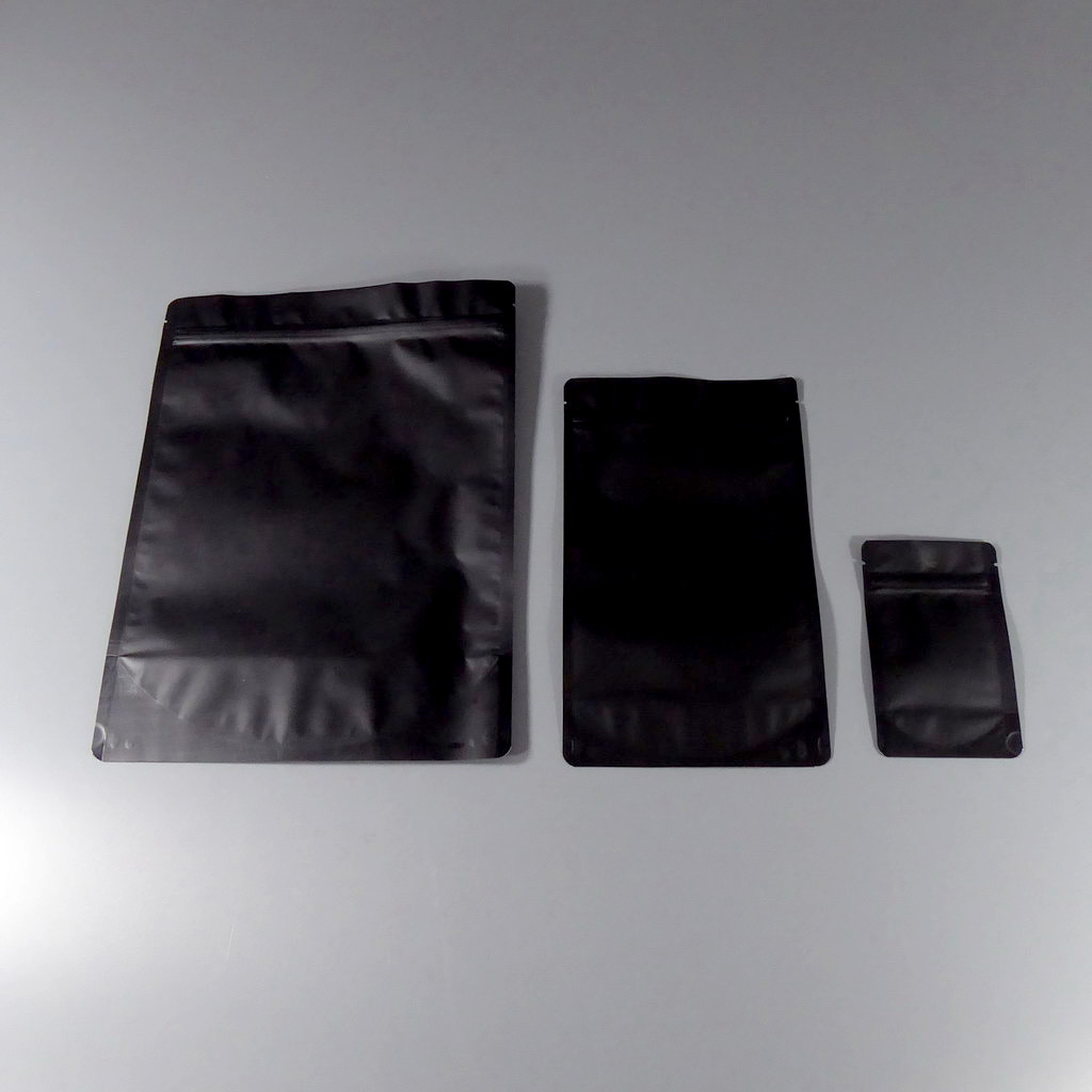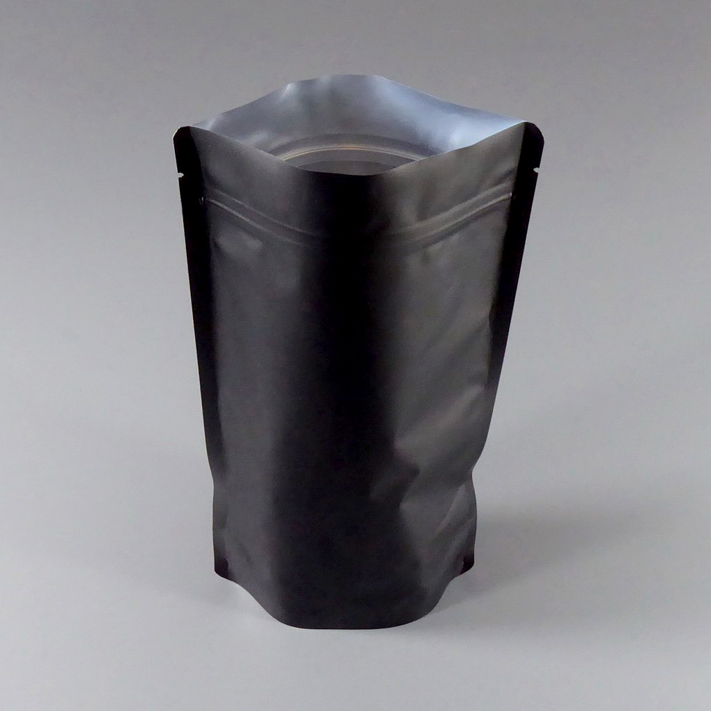 Die lebensmittelunbedenklichen 4-lagigen Standbodenbeutel sind schwarz, matt und bestehen aus einem Verbund, der durch eine sehr hohe Aromabarriere die Frische der Produkte besonders lange gewährleistet. Sie eignen sich perfekt zum Einfüllen einer Vielzahl von Produkten in loser Form. Die Standbodenbeutel werden unbedruckt ausgeliefert und können etikettiert werden; gern bieten wir Ihnen Etiketten mit Werbedruck an. Eine Sonderproduktion und Bedruckung ist bei größeren Mengen möglich; durch eine Ausrüstung mit Aluminiumfolien kann ein erhöhter Aromaschutz bzw. Aromaechtheit erreicht werden.