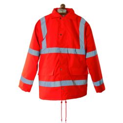 Sicherheitsjacke "Bodyguard": mit Reflektorstreifen, im Kragen integrierter Kapuze und Kordelzug am Bund mit Kunststoffstoppern, Reiß- und Druckknopfverschluss auf Frontleiste