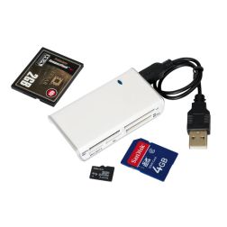 liest XD, MS, SD, SDHC, M2, CF, Micro SD und T-Flash, Version 2.0., mit Funktionslampe und USB-Kabel (ca. 30 cm lang)