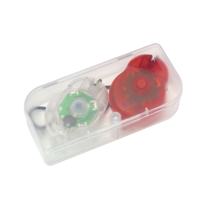 Lampen-Set "Smart Lights": eine Lampe mit rotem Licht und eine mit weißem Licht, 2 Leucht-Modi (Dauerlicht und Blinklicht), gummierter An- und Ausschalter, mit elastischem Band zum Befestigen an Lenkstangen, in transparenter Box