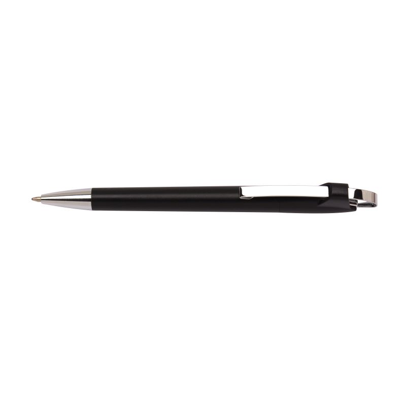 mit Druckmechanismus, Kunststoff-Schaft, Metall-Spitze und geschwungener Metall-Clip, schwarzschreibend