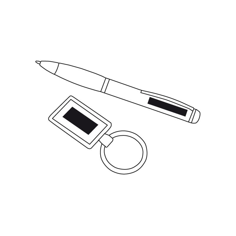 bestehend aus Drehkugelschreiber (blauschreibend) und farblich abgestimmtem Schlüsselanhänger