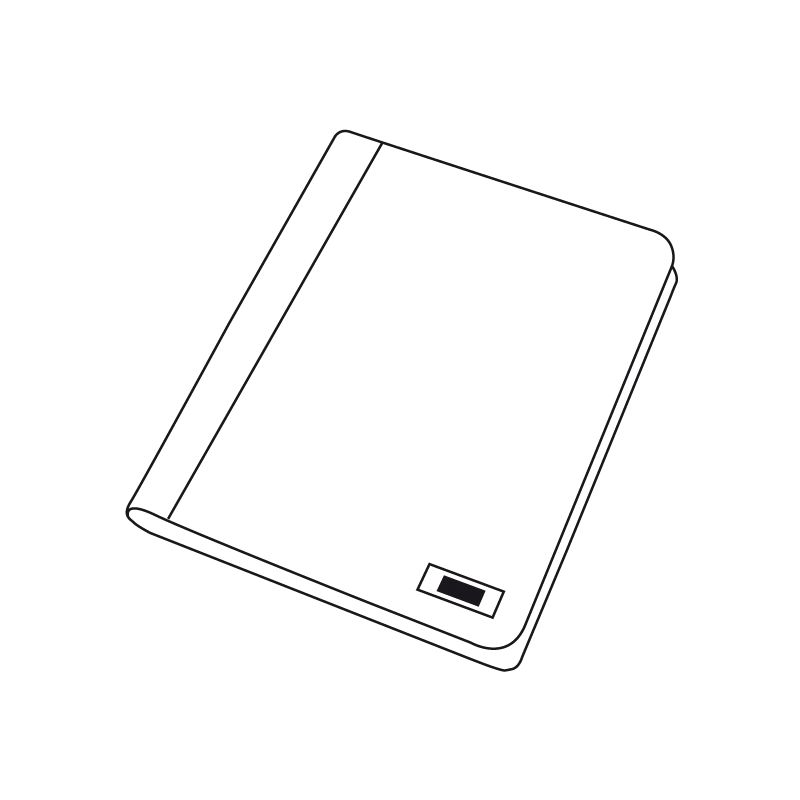 Schreibmappe "Linen" im DIN-A5-Format: innen diverse Einsteckfächer, 1 Klarsichtfach, inkl. Schreibblock, Schlaufe für ein Schreibgerät, außen mit Metallplättchen für Ihr Logo