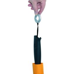 Stockschirm "Ring" mit ausziehbarem Ring im Griff - zum Befestigen an der Schirmspitze und integriertem Schultergurt: Aluminiumstock, Fiberglasspeichen und Metalltips, gummierter Griff, Polyester-Pongee-Bespannung und -Hülle, Schließband mit Klettverschluss