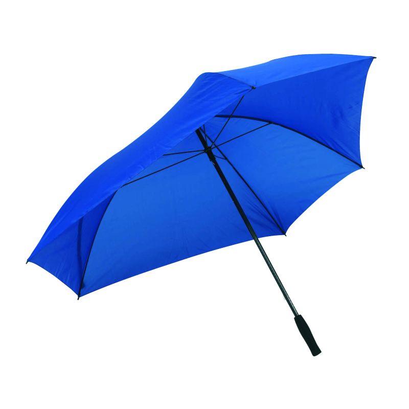 Fiberglasstock und -speichen, Kunststofftips, schwarz-gummierter Griff, 190T Polyester-Pongee-Bespannung (3 breite und 3 schmale Segmente), Schließband mit Klettverschluss