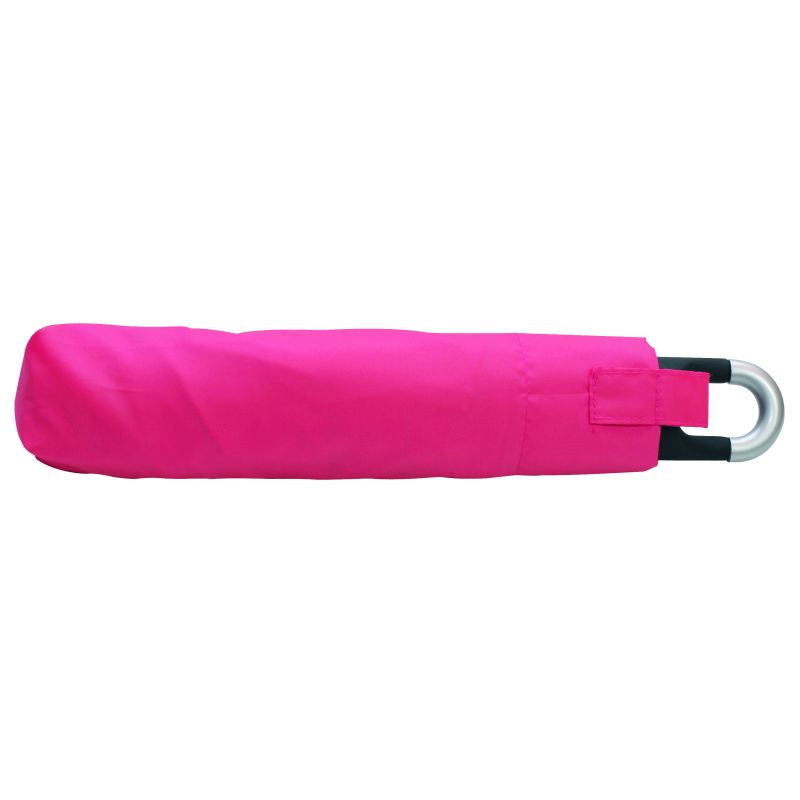 mit im Griff integrierter Aufhängefunktion: 204g-leichtes Gestell, 3-teiliger Aluminiumstock, Aluminium-Fiberglasspeichen, Metalltips, gummierter Griff, Polyester-Pongee-Bespannung und -Hülle, Schließband mit Klettverschluss