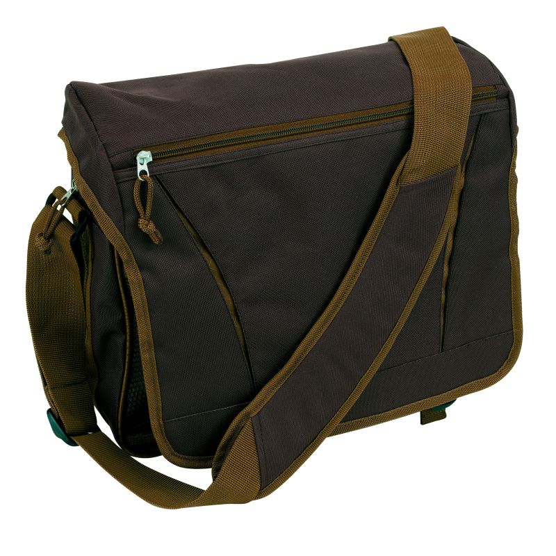 Umhängetasche "Africa": Reißverschluss-Hauptfach, Reißverschluss-Vorfach, Umschlag mit Schnappverschlüssen, kleiner Organizer mit Reißverschluss-Netzfach und Stiftefächern, verstellbarer Gurt mit Schulterpolster