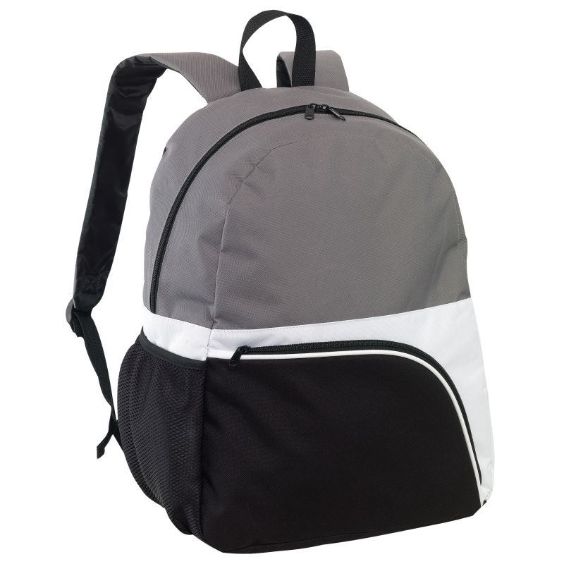 Reißverschluss-Vorfach, geräumiges Hauptfach mit Reißverschluss, 1 seitliches Netzfach, Trageschlaufe, Schultergurte und Rückenbereich gepolstert