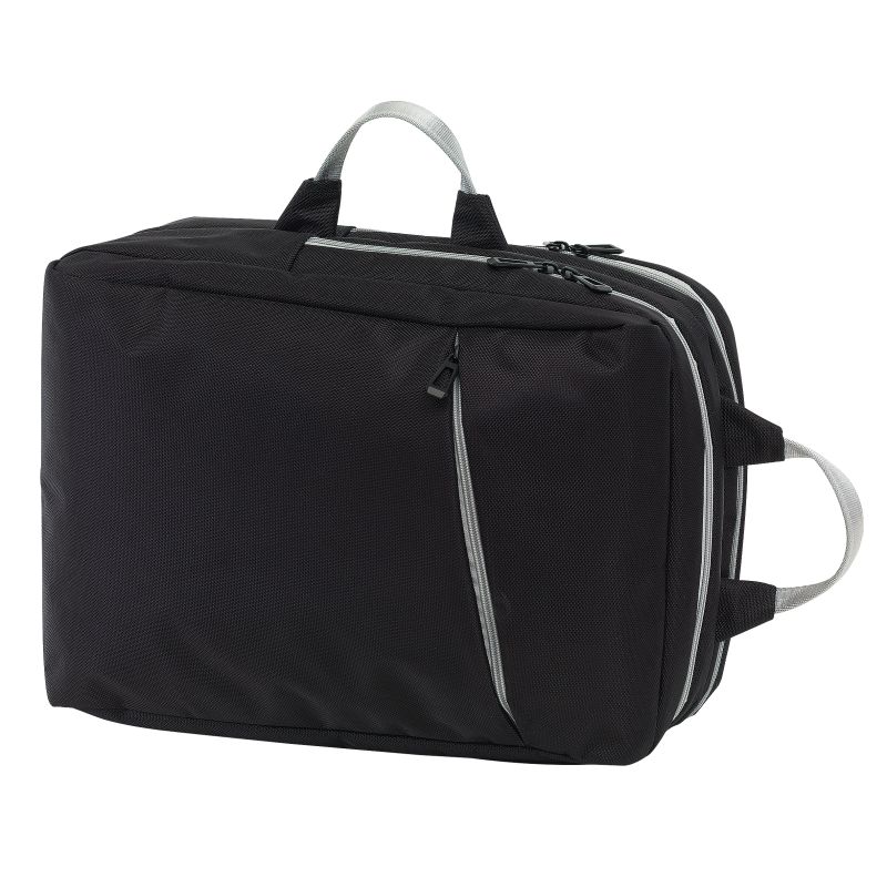 Rucksack "Twosome" – auch als Dokumententasche tragbar: Reißverschluss-Vortasche, 1 Reißverschluss-Hauptfach mit kleinem Organizer, 1 gepolstertes Reißverschluss-Hauptfach mit Steckfach – geeignet für einen Laptop, 2 silbern abgesetzte Tragegriffe, 2 verstellbare Schultergurte mit Polsterung, Reißverschlussfach auf der Rückseite zum Verstauen der Rucksack-Gurte