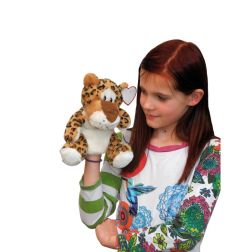 Plüsch-Handpuppe Leopard "Leevi": außen mit weichem Fell und innen mit Baumwollstoff gefüttert – leicht mit der Hand zum Reinschlüpfen, um Arme und Kopf zu bewegen